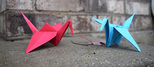 Here it is. Our first attempt at origami. I thought we’d go traditional for our first ones. Here are our cranes. A little rough but not bad.
